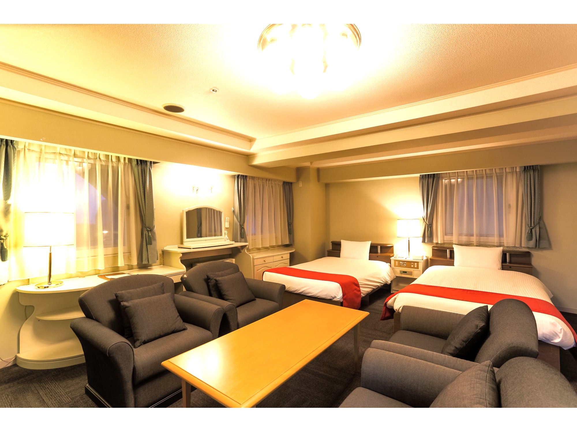 ホテル最上階にある広い洋室と和室。60平米。